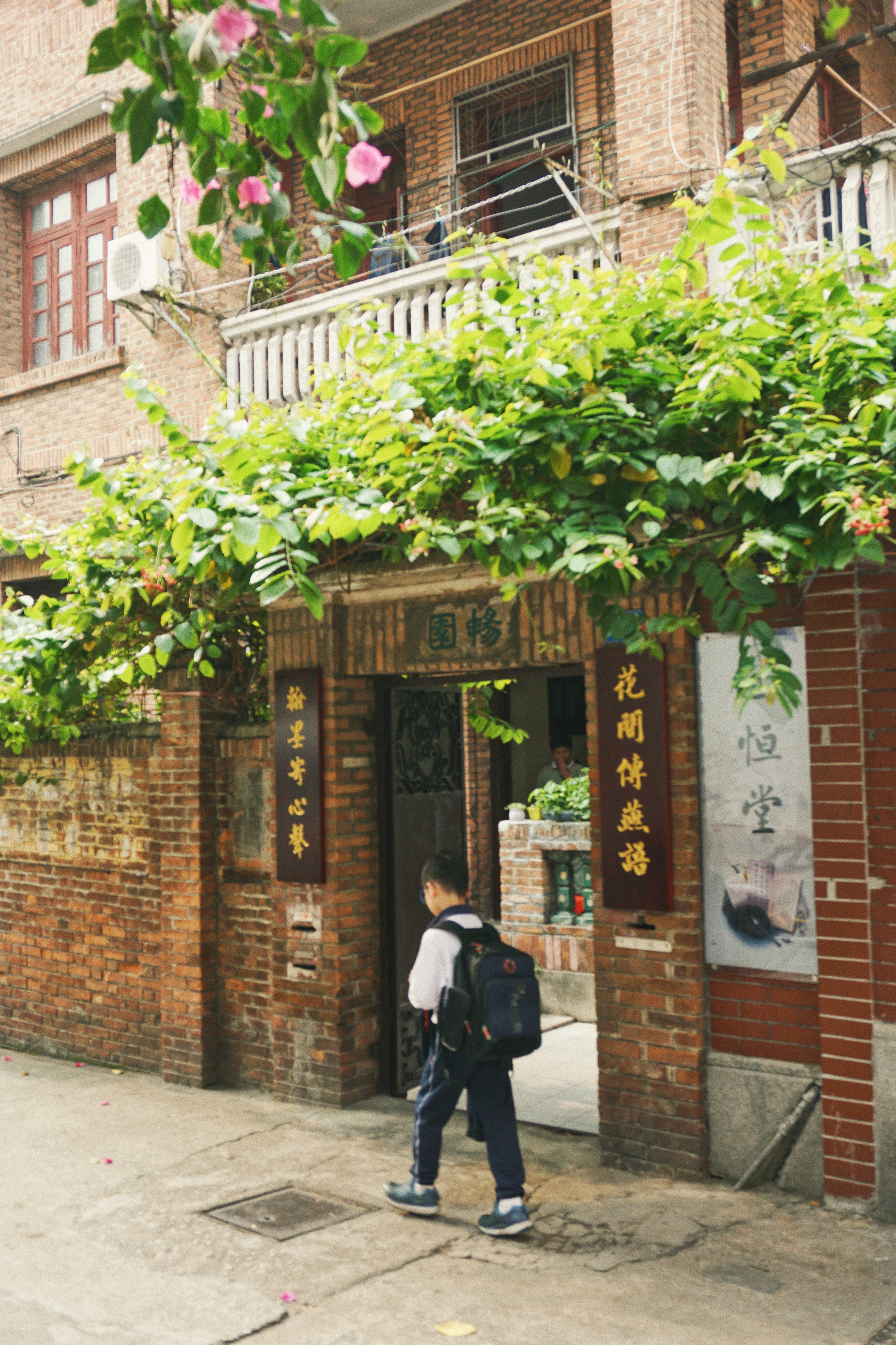 恩宁路,一条最适合放慢步子慢慢欣赏的老街。老字号的天程铜艺,虽然说是一间铺子,但地方却小得很。木门上和店铺内小小的空间里挂满各种铜器:铜壶、铜碗、铜勺、铜手链、铜麻将、铜雀笼、铜铃铛、铜汤婆子......金光灿灿,满屋生辉。最显眼的是一只黄色的大花瓶,花瓶里插着一大束黄色鲜花,色彩极其明艳。头发花白的老伯安然地坐在店铺门口,拿着小锤子,敲打一个未完工的铜壶。夕阳照在他神情专注的脸上,别具传统的造型。喜欢上一个别致的紫铜葫芦,不禁花了几十元把它收入袋中。