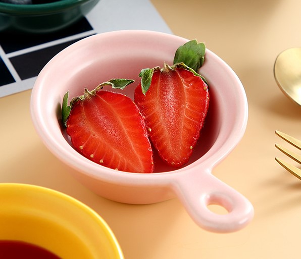 可愛的霧面多彩手把碟,當成早午餐配飾、水果點心、醬料碟皆適合。